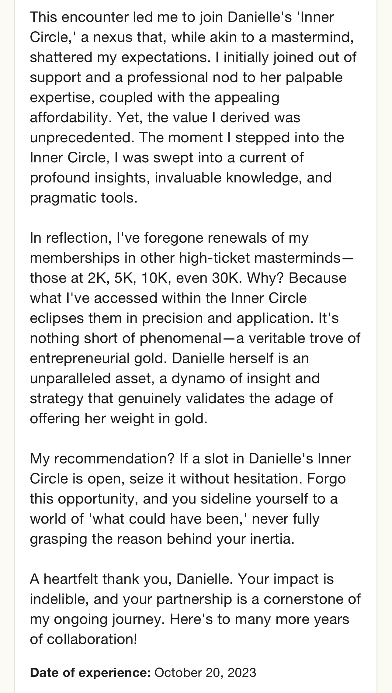 Want to see a sample of the level of support you get inside the Inner Circle?